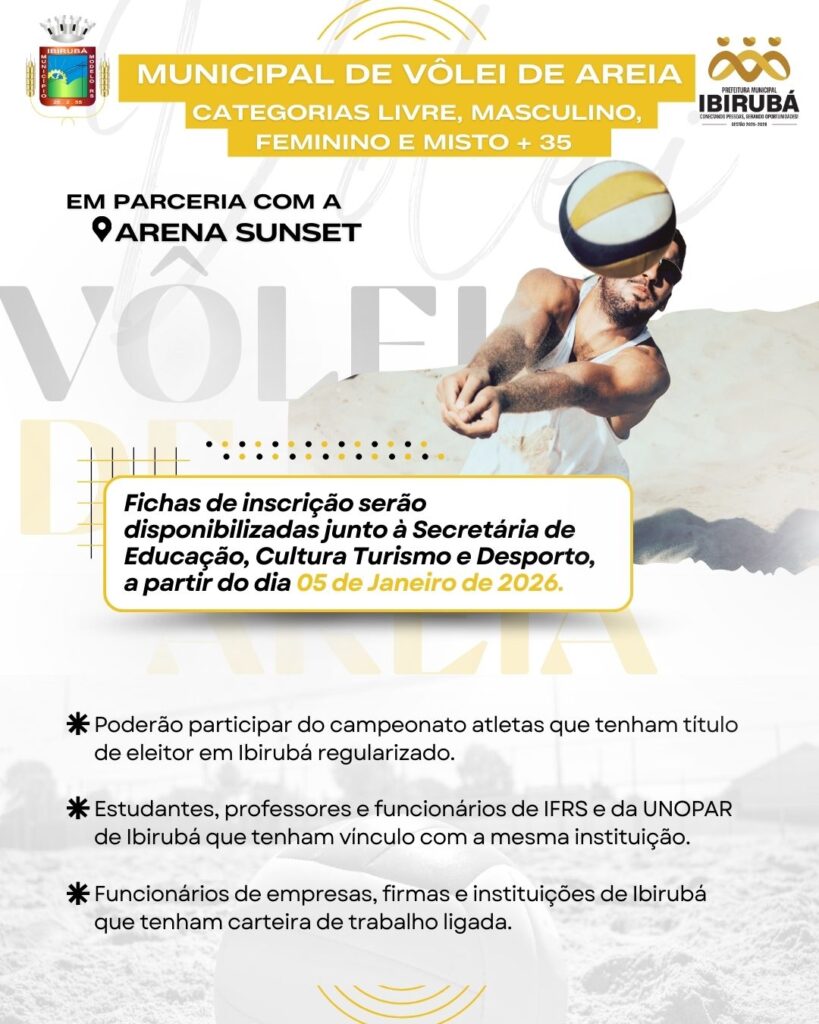 A Administração Municipal de Ibirubá, por meio da Secretaria de Educação, Cultura, Turismo e Desporto, promove mais uma edição do campeonato, com as categorias Livre, Masculino, Feminino, Misto e +35, em parceria com a Arena Sunset.